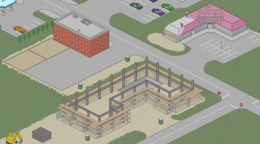 Well, isn't that cute. A lavender/pink scheme. What kind of building could that be? Looks like there is going to be a fairly large sign, too!