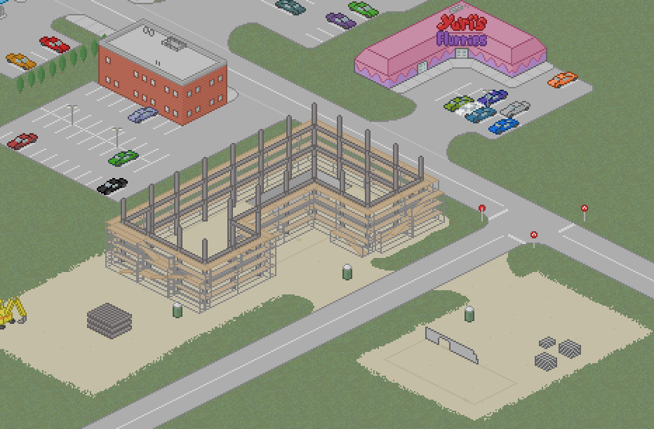 The newest building begins construction. More cars are filling the parking lots of Isotown. Isotown's growing popularity is remarkable, considering its small size. What makes it so appealing? Whatever the reason, it's going to be capitalized on.