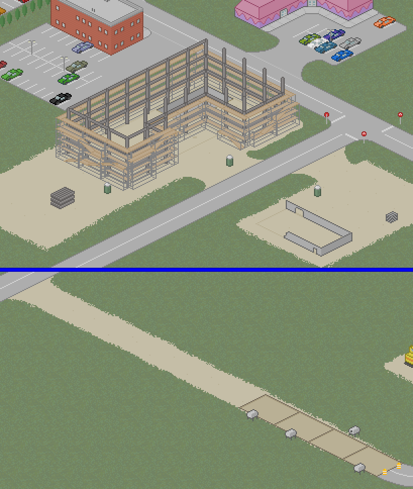 Don't panic, it's a sort of split-screen view done to avoid extra wide images that you have to scroll over to see fully. So yeah, I'll be using this split screen from now on it seems, because Isotown is simply getting big.