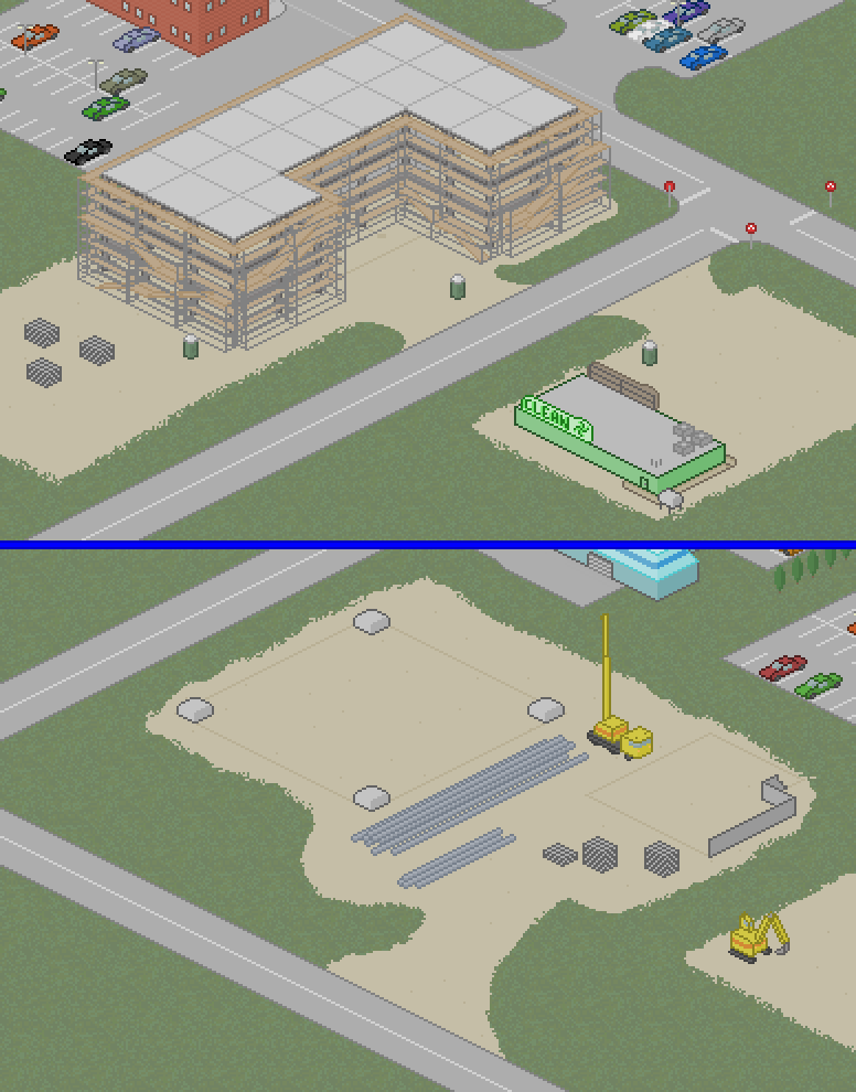 Hmm. Those big cement blocks have been placed at each corner of the big square area. And there seems to be several long metal bars on site. What could this be?