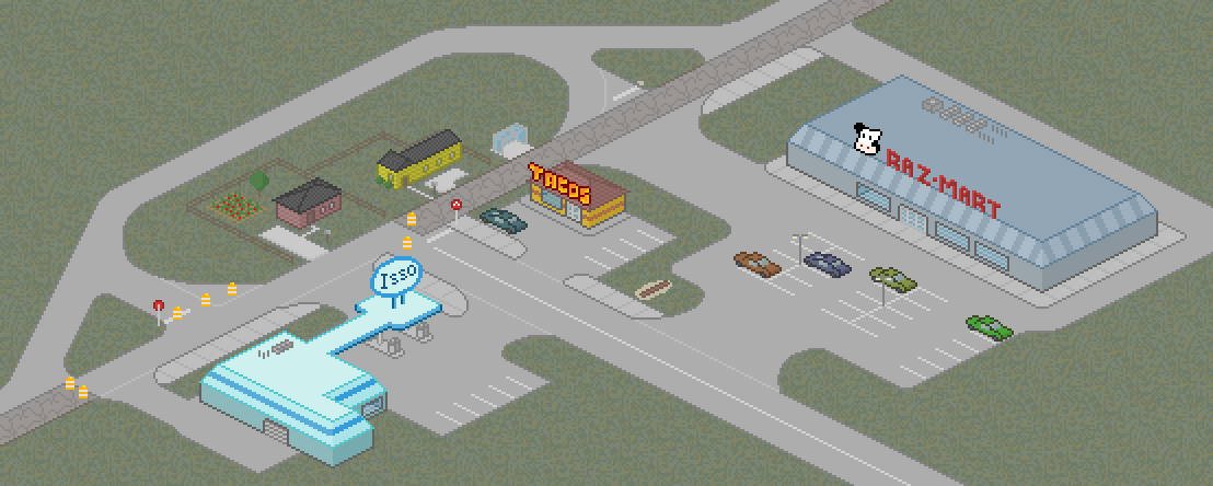 First part of the road is finished, and it looks nice. And as you can see, they zoned out what parts of the road must be removed. There are some more cars at Raz-Mart, and one at Tacos!